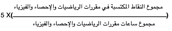 حيث يحتسب المعدل التراكمي لمقررات الرياضيات والإحصاء والفيزياء التي درسها الطالب كما يلي: