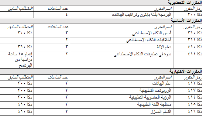جدول ( 1): هيكل برنامج التخصص الفرعي في الذكاء الاصطناعي